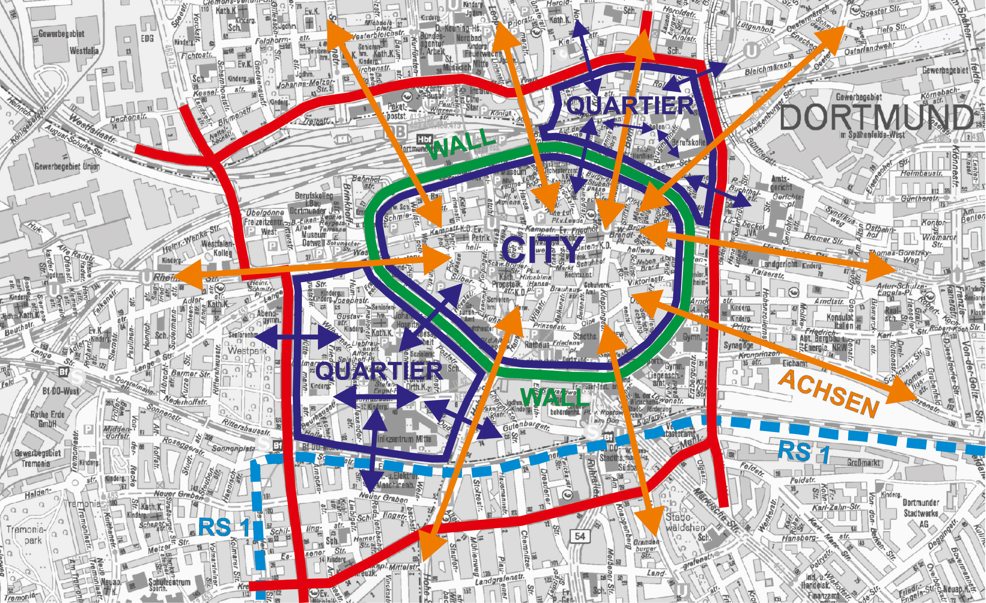 Informationen zum Radwall im Rahmen des Projektes "Emissionsfreie Innenstadt" des Stadtplanungs- und Bauordnungsamtes der Stadt Dortmund.